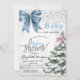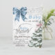Apresentando um arco macio, azul, enfeitado com flocos de neve delicados e um pinheiro de neve, este design exude uma moderna, porém clássica, maravilha do inverno, completa com a encantadora mensagem "Baby it is frik out". Esses convites para chuveiros de bebês são facilmente personalizados para seu evento simplesmente adicionando seus detalhes.