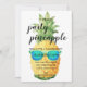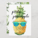 Todos amam uma festa, especialmente uma festa de Verão. Surpreenda seus convidados com este design caprichoso tropical com um abacaxi com óculos de festa para um convite verdadeiramente divertido e alegre. O verso apresenta folhas verdes luxuriantes em consonância com o tema tropical.
