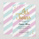 O chá de fraldas listrado cor-de-rosa e azul da luz - convida com texto do ouro. Impressão traseiro incluído.