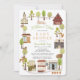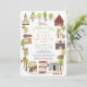 Este belo convite de chá de fraldas "é preciso uma vila" neutro em relação ao gênero apresenta uma vila com casas, compras, igreja, árvores e animais florestais. O verso apresenta um fundo verde com padrões florais. Personalize-o para as suas necessidades. Você pode encontrar produtos correspondentes na minha loja.