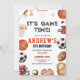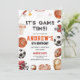 É hora do jogo! Este convite de aniversário desportivo é uma escolha vencedora para qualquer menino que ame o jogo. Quer ele esteja no beisebol, basquete ou futebol, este convite dá o tom para uma celebração divertida e ativa. Personalize com o nome do seu filho e os detalhes da festa em apenas alguns cliques.
