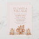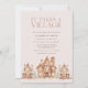 O convite para o Chá de fraldas da Cidade de Férias da Aldeia com um tema da casa de pão-de-gengibre e cria uma encantadora e acolhedora cena de terra maravilhosa do inverno. O convite apresenta uma deliciosa e caprichosa vila de casas de pão-de-gengibre assoadas com gelo de "neve", rodeadas por delicados flocos de neve. Cada casa, intricadamente decorada com gelo, gotas de goma e pequenos sotaques de doces, representa o apoio acolhedor de amigos e familiares à medida que se juntam para celebrar o novo bebê. A paleta de cores é macia e convidativa, usando tons neutros de inverno. É um convite que promete um cheio de calor, amor e entusiasmo compartilhado em meio a uma cena de inverno aconchegante. Itens correspondentes disponíveis.