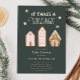 Chá de fraldas de Natal russo e moderno para uma menina com ilustração desenhada à mão de casas de pão de gengibre com glacés cor-de-rosa. O texto diz "é preciso uma vila."