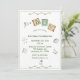 Este é um adorável convite para chás de bebês. Escrito "É um menino" com um olhar antigo. Brinquedos antigos rodeiam a tipografia de convite. Esta design é terminada com brinquedos de verde e antiquados de aquarela no verso.
