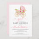 É uma menina, buquê de flores e berço de bebê em ouro, convite de festas chá de fraldas.