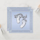 Lindos convites para bebês de chá azul para rapazes - O Chá de fraldas Elegante convida com um par bonito de pegadas de bebês e as palavras é um rapaz. Há uma bonito estrutura azul pálida e prata e flores e um lindo berço de bebê azul e branco na parte de trás dos convites. Observe que: Todos os convites no Zazzle têm imagens impressas em formato plano. Se precisar de assistência para personalizar o seu produto, entre em contato comigo pela loja e terei todo o prazer em ajudar.