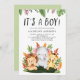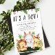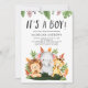 Personalize facilmente este belamente chamado "é um menino" e açafrão convite animal para o seu chá de fraldas. O convite apresenta animais bonitos de safari: leão, elefante e girafa.