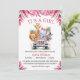 Selgle Safari É uma Menina Bebê Chamas Anunciem aos seus amigos e família que você está tendo uma garota! Estes convites são feitos com lindos bichos-da-selva-água, como um leão, girafa, elefante e zebra em um carro.