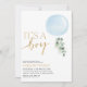 É um menino! Balão azul, verde e chá de fraldas de ouro falso.