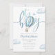 Este charmoso convite para chás de fraldas apresenta um balão e nuvens de ar quente azul e bonito, juntamente com a elegante tipografia de script. Projetado por Thisnotme©