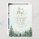 Este convite à chá de fraldas da floresta rustica e elegante de pinheiros com aquarela pode ser personalizado com suas informações na tipografia moderna e uma foto especial no verso, junto com seu código QR de registro. Projetado por Thisnotme©