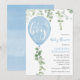 Convites É um chá de fraldas de eucalipto com um balão azul
