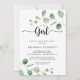Este é um convite de chá de fraldas de eucalipto, delicioso verde feminino, é perfeito para um simples chá de fraldas ou borrão. A design apresenta galhos e folhas botânicas elegantes e desenhadas a aquarela e desenhadas à mão.