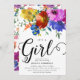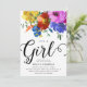 É um Convite para Chás de fraldas Florais Brilhante e Negrito. Design apresenta flores pintadas manualmente com aquarela com folhagem verde e um modelo elegante clássico de chá de fraldas que é fácil de personalizar. Celebrações vibrantes, coloridas, divertidas e perfeitas de primavera e chá de fraldas de verão.