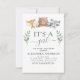 Animais da Floresta - Urso, Racão, Fox Eucalyptus Greenery Botanical Watercolor Primavera Neutral É uma Menina Chamada de Bebê sobre fundo branco - inclui uma bela e elegante tipografia de guião com folhas botânicas modernas e verde para a celebração da Mãe Especial Ser.
