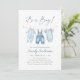 Celebre a chegada de um pequeno com este elegante convite de chá de fraldas com jean azul.