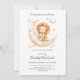 Um convite ilustrado de chá de fraldas de um menino de aquarela de leão, com a frase: "é um menino e estamos sobre a lua". Você pode mudar a frase e criar a sua ou deixá-la como está.