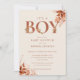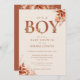 É um convite de chá de fraldas de menino que apresenta uma elegante tipografia de terracotta e folhagem floral rústica. Projetado por Thisnotme©