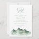 Este é um convite para uma garota chá de fraldas verde do país da montanha é perfeito para um chá de fraldas rústico ou borrão. A design apresenta uma montanha verde pintada à mão de uma aquarela, inspirando um tema do campo.
