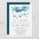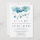 Um motif brilhante de estrela azul. A parte superior do cartão mostra uma cascata de estrelas aquáticas em diferentes tons de azul, suspensa acima do anúncio "É um menino" em roteiro lúdico. As fontes de serif e script legantes destacam o nome e os detalhes do evento da honoree, todos definidos em um plano de fundo suave. Perfeito por receber um menino, este convite traz um toque de magia e calor para sua celebração especial.