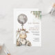 É um convite para chás de fraldas de cor d'água de um menino, vaca bebê e balão. Encantador e caprichoso. Pastel marrom e cinzas. Para o bebê fazenda do campo!