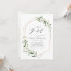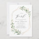 Verde moderno é um convite para chá de fraldas de Menina que continha folhagem botânica de cor aquática rústica verde e folhas falsas de folha de ouro e quadro geométrico, simples e elegante. Ver todas as peças correspondentes na coleção