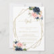 Este é um convite para chás de fraldas geométricos de ouro floral feminino é perfeito para um chá de fraldas rústico ou borrão. A design apresenta belas flores azuis escuras pintadas manualmente, azuis, marinhos, rosa, pinceladas, douradas e folhagem verde.