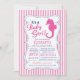 Convite moderno, ousado e rosa, de chá de fraldas marinho rosa-claro, com um lindo cavalo de bebê rosa-quente. Nosso convite é uma garota náutica... é colocado sobre um fundo colorido de faixa branca e rosa... e tem um toque especial. Perfeito para um chá de bebê velejante no oceano de praia de verão