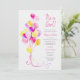 Celebre sua entusiasmo da sua futura menina com a família, amigos e entes queridos com este convite para chá de fraldas de balão cor-de-rosa.