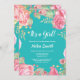 É um convite para Chás de fraldas Florais Rosa.Rosa. Chá de fraldas Garden Girl. Flores Botânicas De Cor D'Água, Rosa, Rosa. Pêonias Rosa. Fundo do Teal Aqua Turquoise.