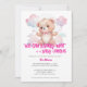 Um belo chá de fraldas Convite com um filhote de urso bonito tocando em floresta em nuvens brancas