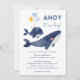 Este design faz parte da coleção de chás de fraldas "Baleia Azul". Apresenta artigos de papelaria bonitos com ilustrações de animais de baleias aquáticas em tons azuis complementados com capim-do-mar, algas e alguns peixes. Os principais convites da coleção têm o trocadilho engraçado "Ahoy, é um menino" Perfeito para festas de chá de fraldas de menino ou de revelação de gênero. Pronto para personalizá-lo com os detalhes do evento, basta clicar no botão personalizar acima e adicionar as informações da sua mãe + da festa!