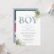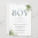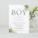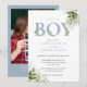 Convites É um menino Dusty Blue Greenery Foto Chá de Bebê