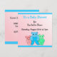 Um fundo cor-de-rosa doce com uma borda azul acentua três encantadores teddyursos em rosa, azul e verde. Personalize com todas as informações do seu chá de fraldas conforme desejado.
