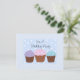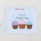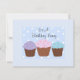 Elegante design de cupcake neste divertido convite de aniversário... três deliciosos cupcakes num fundo de bolinhas azuis e brancas... fofo design para colocá-los no humor da festa...