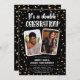 Jogando uma Dupla Celebração de Aniversário - Este modelo de aniversário é perfeito! Adequado para qualquer idade e gênero! Design apresenta um fundo preto com um confete de ouro falso moderno, duas fotografias da aniversariante/rapaz, com um modelo de texto branco divertido que é fácil de personalizar com os seus próprios detalhes de eventos.