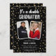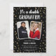 Comemorar duas formações ao mesmo tempo? Este modelo de festa de destaque é o que você precisa. Perfeito para melhores amigos, irmãos ou gêmeos que buscam uma celebração inesquecível. É elegante com um fundo preto, brilhando com confetes dourados falsos e personalizado com fotos dos formandos. Além disso, o modelo de texto divertido e fácil de editar torna tudo seu. Faça seu evento de dupla formatura inesquecível!