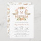É uma garota! Este chá de fraldas elegante é a forma perfeita de deixar todos saberem que está a caminho um pequeno pacote de alegria. Este convite apresenta belas cegonhas pintadas à mão, flores rosa-pinceladas e cor-de-pêssego em volta de um quadro cor-de-rosa com um monograma para personalização. As costas incluem um adorável padrão caprichoso. Encontre itens correspondentes na "É uma Rapariga"! Watercolor Storks Coleção de Convite de Chá de fraldas.