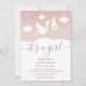 Convites É uma Garota Chá de fraldas de Stork Rosa Dourada