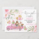 Adorável convite ao chá de fraldas, com elegante verde-aquarela, bonito flores cor-de-rosa, adoráveis animais florestais e balões festivos cor-de-rosa e ouro.