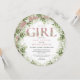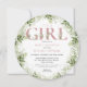 É um convite para chás de fraldas de meninas com elegante tipografia rosa cor-de-rosa poeirenta e bonito folhagem botânica verde. Projetado por Thisnotme©