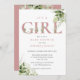 É um convite para chás de fraldas de meninas com elegante tipografia rosa cor-de-rosa poeirenta e bonito folhagem botânica verde. Projetado por Thisnotme©