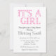 Convites É uma garota, simples, rosa e Chá de fraldas branc