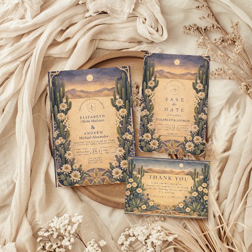 Convites Earthy Desert Floral Wedding
