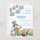 Hop on over for a delightful Easter Tea Party with this whimsical invitation! Featuring a charming illustration of the Easter bunny at a Mad Hatter / March Hare style tea party. The design includes playful cupcakes, colorful Easter eggs nestled in a bird's nest, and blooming spring flowers, all set against a soft pink and green color palette. It's the ideal way to invite guests to a magical celebration, whether for a birthday or a special Easter event.