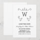 Monograma Simples e Moderno de Farinha Whimsical Salve o Convite de Data com um motif elegante em preto. Fácil de personalizar, basta adicionar os detalhes iniciais e do casamento nos campos de texto fornecidos. Clique em "Personalizar" para encontrar mais opções de personalização.