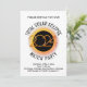 Personalizado o Convite de festas TOTAL ECLIPSE 2024, com TEXT PERSONALIZÁVEL, para celebrar o Total de Eclipse Solar sobre os EUA Continental, Canadá e México em abril de 2024. TODO O TEXTO (excl. 2024) É PERSONALIZÁVEL, de modo que você possa personalizar seu convite de festas de visualização. Você pode usar o campo de texto curvo superior para uma frase mais longa, se necessário (e excluir o texto curvo inferior). A design mostra um eclipse solar com efeito dourado 2024 no meio. Há texto PERSONALIZÁVEL listado no sentido inverso. Comprar estes convites para o eclipse solar convidarem a família e amigos para a sua festa do eclipse solar. A totalidade valerá a pena!