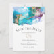 Envie seus pedidos de Save the Date - Certifique-se de que seus convidados estejam disponíveis para participar do seu casamento - Arte de tinta alcoólica elegante e design de pintura em aquarela em tons de azul-teal, azul-cerúleo e roxo ametista com textura em dourado falso, acentuado com texto em fonte serifada curva moderna "Save the Date" Use nosso modelo fácil de personalizar para personalizar com seus detalhes - Um Design Deslumbrante © por WhimsicalArtwork™