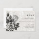 Este cartão RSVP de na moda de casamento apresenta um fundo branco cinza com um efeito texturizado sujo, e uma ilustração vitoriana de rosas de safra preto e branco que se transformaram num olhar muito moderno.