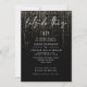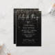 Champanhe borrado, champanhe brilhante, cascatas pardas na página abaixo, na caligrafia manuscrita está "vamos fazer isso" - as iniciais do casal no topo - o resto do texto é simples e limpo - tudo em um fundo preto. Estacionário de casamento elegante.